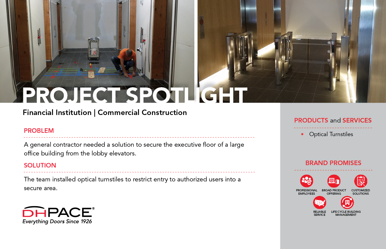 A general contractor needed a solution to secure the executive floor of a large office building from the lobby elevators.